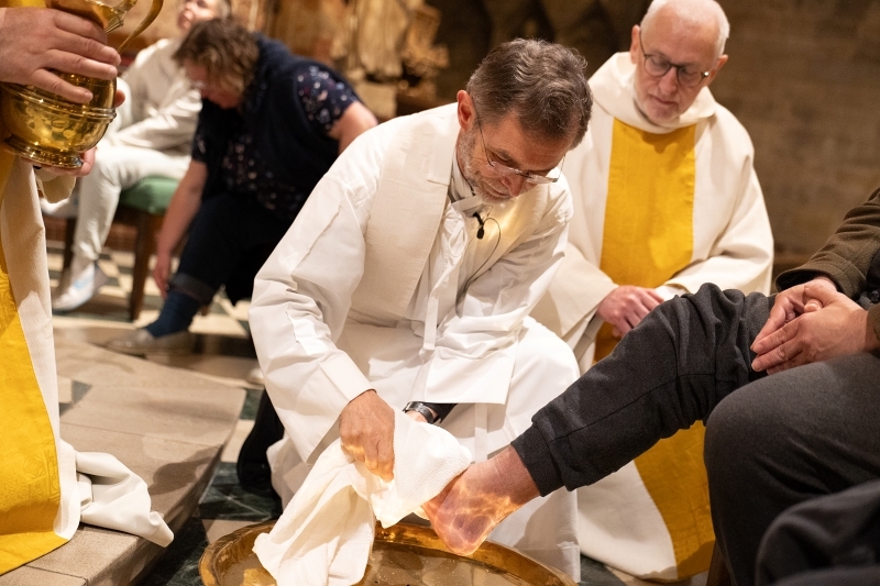 Und schließlich der 3. Schrifttext. Wo die anderen Evangelien das Letzte Abendmahl überliefern, berichtet der Evangelist Johannes von der Fußwaschung. Damit zeigt er: Kommunion und Caritas, die empfangene Eucharistie und die im Alltag gelebte Liebe gehören zusammen. „Ein Beispiel habe ich euch gegeben, damit auch ihr so handelt wie ich an euch gehandelt habe.“