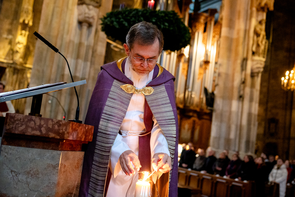 Ich wünsche denen, die am Heiligen Abend fröhlich und dankbar sind, und auch den Traurigen und Einsamen, dass wir alle in der Heiligen Nacht etwas von dem erleben, was der Krippenaltar hier im Dom zeigt: